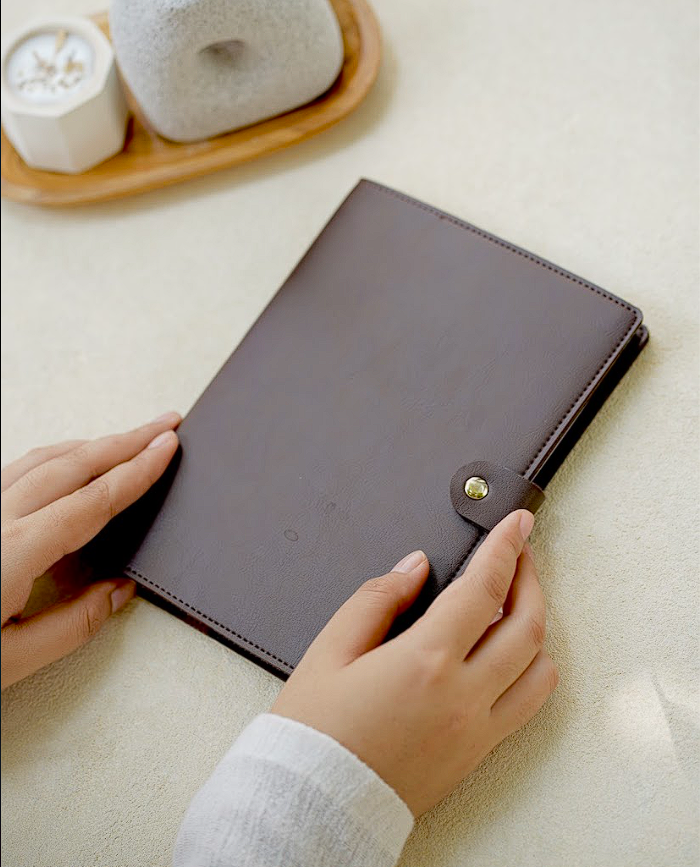 Notebook ini hadir dengan cover berbahan kulit premium yang bisa di-custom sesuai kebutuhan. Cocok digunakan untuk keperluan pribadi, kantor, maupun sebagai souvenir eksklusif dan corporate gift.